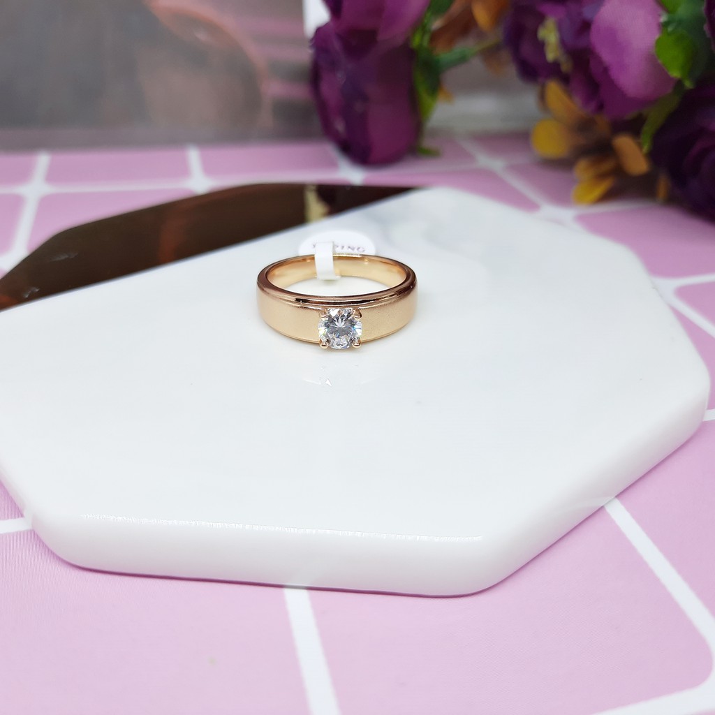 Cincin Kawin Xuping Asli Batu Solitaire Emas Pasir Pria Wanita - BR563