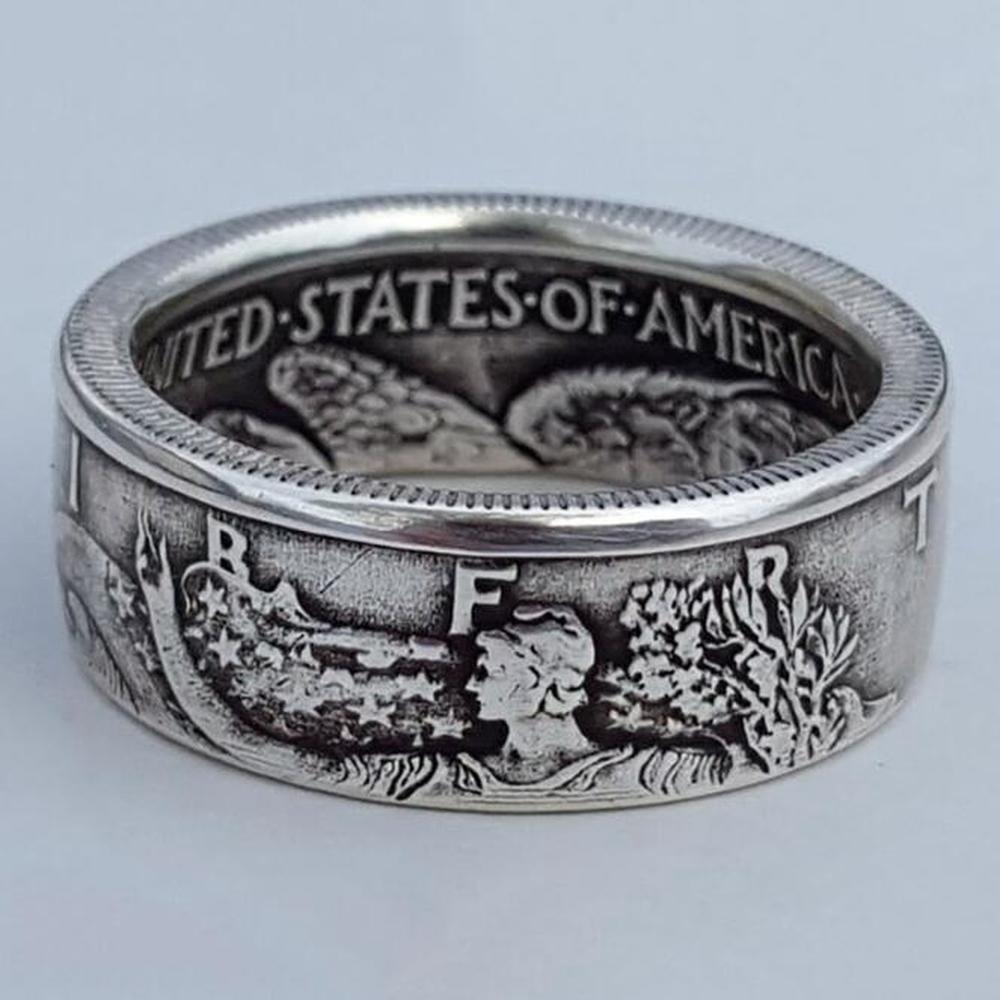 Kelebihan - Kelebihan membeli Kreativitas Setengah Dollar Koin Antik Perak Pria Wanita Stainless Steel Perhiasan Fashion Punk Cincin Silver Rings di Toko ini