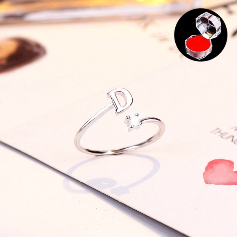BBBC Cincin Permata Huruf Alfabet P-Z Cincin Wanita Aksesoris Fashion Cincin Huruf Silver Part 2