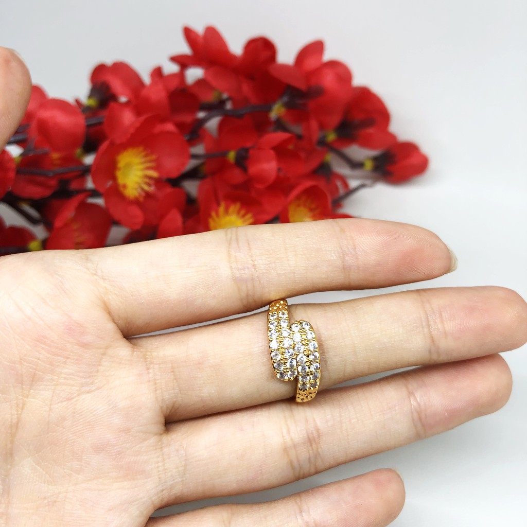 KIFIL Cincin Simple Sterling Silver 925 Hias Kristal Zircon 3 Lapis Emas 18K Untuk Wanita