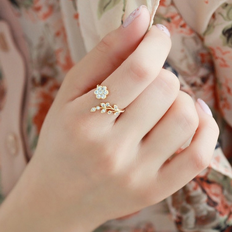 Alasan kenapa harus beli Cinin Korea fashion temperamen berlian memutar daun angan cincin pembukaan bunga sekarang