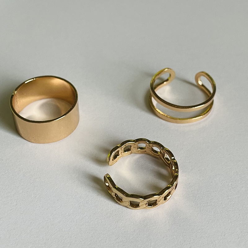 Kekurangan - Kekurangan membeli 【MHANG】Set Cincin Wanita Terbuka Lebar Baru Kepribadian Fashion Cincin Logam Berongga Cincin Warna Solid Tiga Potong di Toko ini