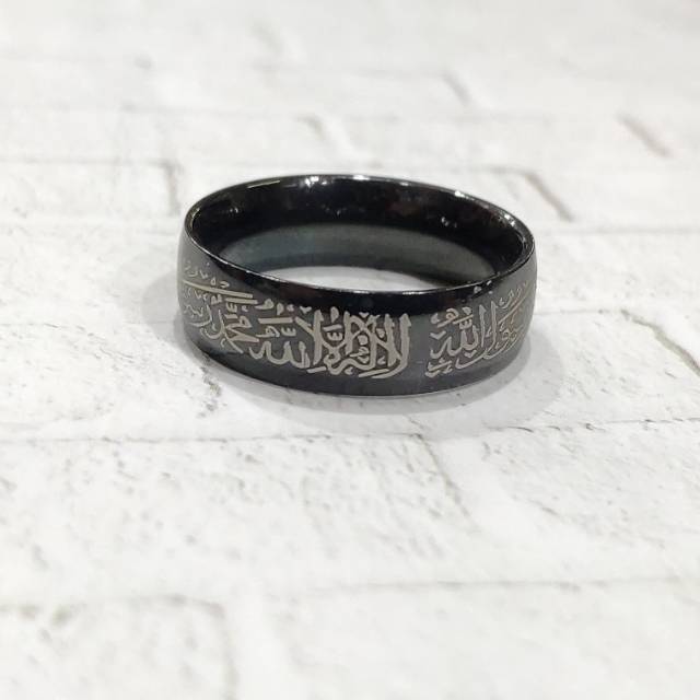 Cincin Tauhid Hitam Syahadat Muslim Tulisan Arab Islam Lafadz Lafal Titanium