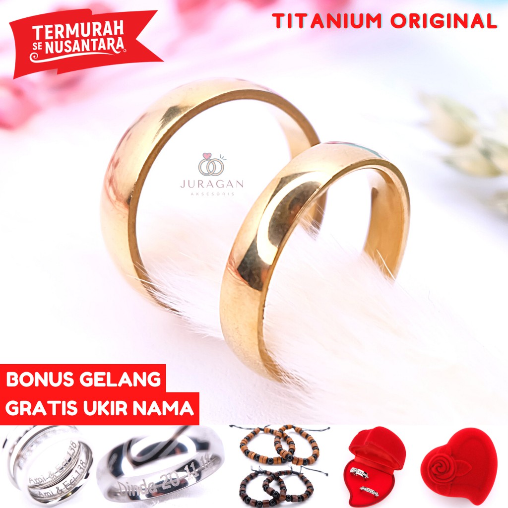 [UKIR NAMA + BOX HATI] Cincin Couple BUCIN Titanium M17 BONUS Gelang Couple