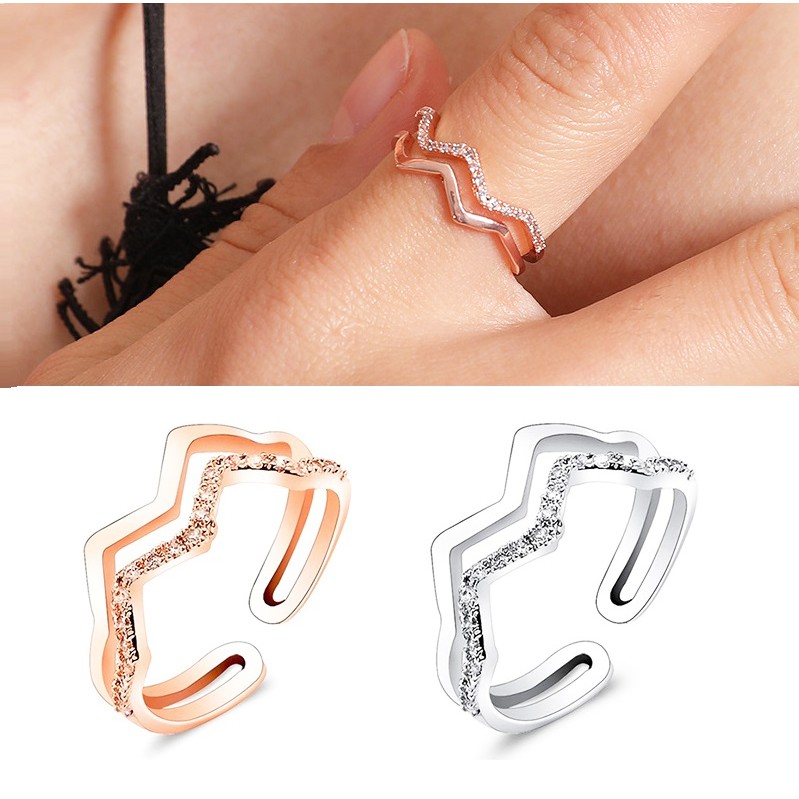 Cincin Desain unik Korea berbentuk V wanita bertatahkan berlian cincin sederhana Rings