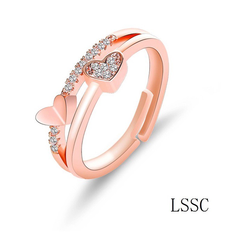 Korea Baru Cincin kawin Pertunangan Berlian imitasi Jantung Pembukaan Ukuran Disesuaikan Gelang Ring