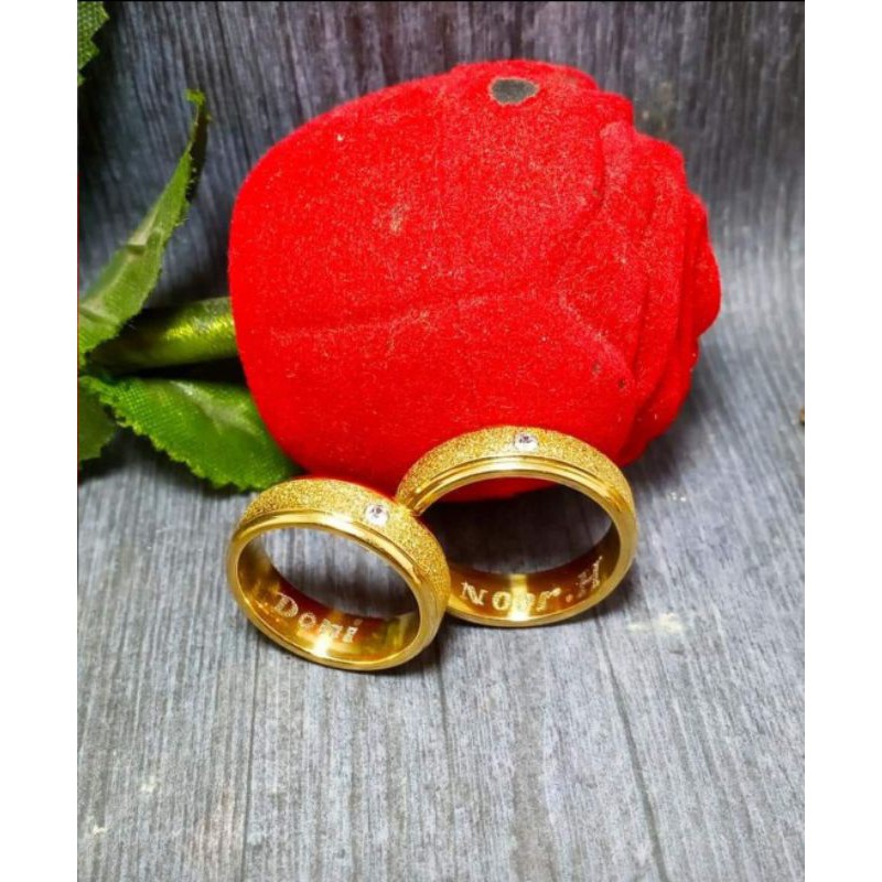 Kekurangan - Kekurangan membeli Cincin Couple Tunangan Nikah Kawin Ukir Nama Gold Titanium Pasir Mata Lapis Emas Anti Karat di Toko ini